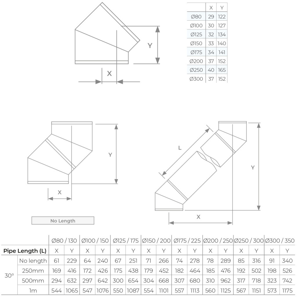 The 2 segment 30° Elbow is used for creating offsets in your flue system.
