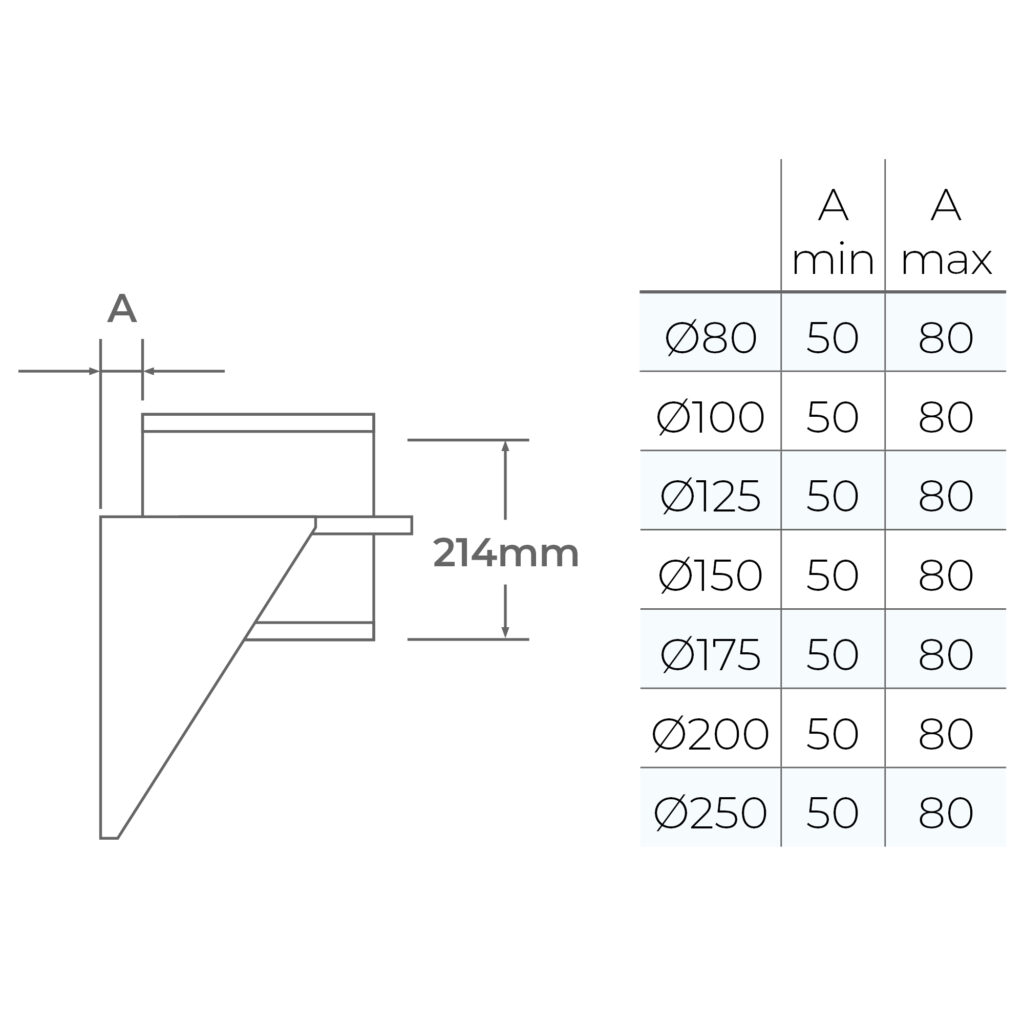 The Adjustable Base Supports are used internally or externally to provide vertical support to the chimney. This support has a small levelling adjustment of 50mm to 80mm from the wall surface. Only recommended fixings should be used to fit this base support to the building surface.