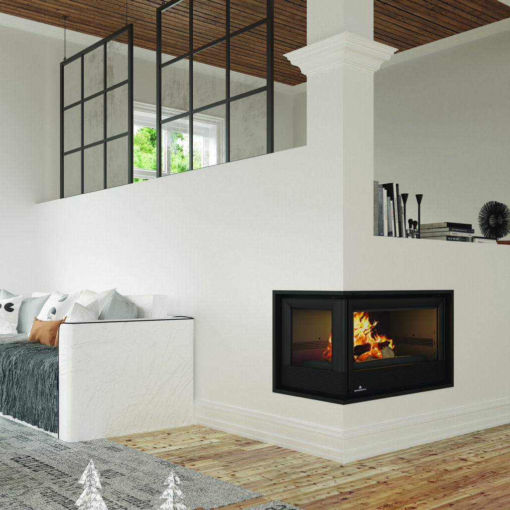 The Paris 90 Vision features a sleek, full black glass front that adds an elegant touch to the panoramic glass viewing window and left side panel, offering a more expansive view of the fire. Equipped with an advanced airwash system, carefully engineered to keep the glass clean and clear. This innovative system prevents the build up of soot, tar, and other residues, ensuring an unobstructed view of the mesmerising flames, all while reducing the effort needed for maintenance.