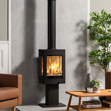 The compact Uno features a modern Scandinavian look and a range of styling options to really allow you to personalise your stove. The Uno 1 model stands out with its pedestal base, giving an elevated view of the firebox, while maintaining the subtle elegance of this compact yet powerful stove.
