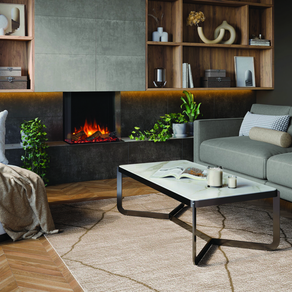 Gazco’s Chromalight® Immersive LED Systems create a mesmerising display with almost endless possibilities. Vivid flame effects are projected to appear amongst the fuel bed for a deep, three-dimensional display.