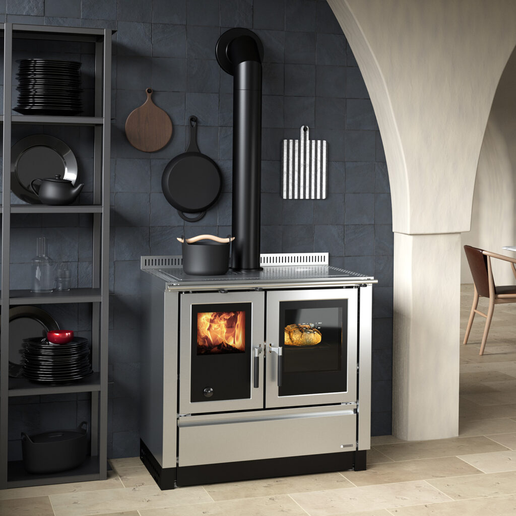 Introducing the La Nordica Venezia 8.3kW Wood Burning Cooker in stunning Stainless Steel, the epitome of elegance and functionality for your kitchen. Crafted with precision and passion, this cooker combines traditional charm with modern features to elevate your culinary experience.