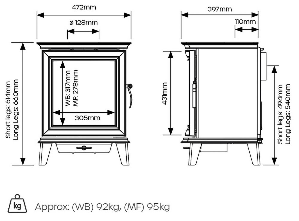 These Stovax stoves come with a 10 year warranty period. As a rough guide, this stove’s output is suitable for a room measuring in the region of 18ft (L) X 17ft (W) X 8ft (H) non-open plan with average insulation properties.
