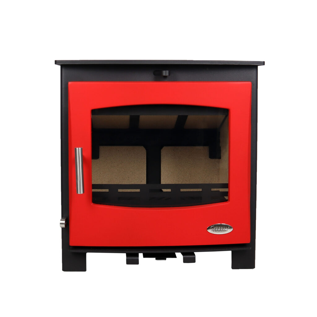 This British-designed stove is our own very popular brand combining traditional cast iron with a contemporary 10mm thick steel body, offering a perfect balance of durability and style. With a 5.0kW output (4.6kW for wood, 4.9kW for coal), it is ideal for small to medium spaces and reaches optimal heat output faster than similar stoves.